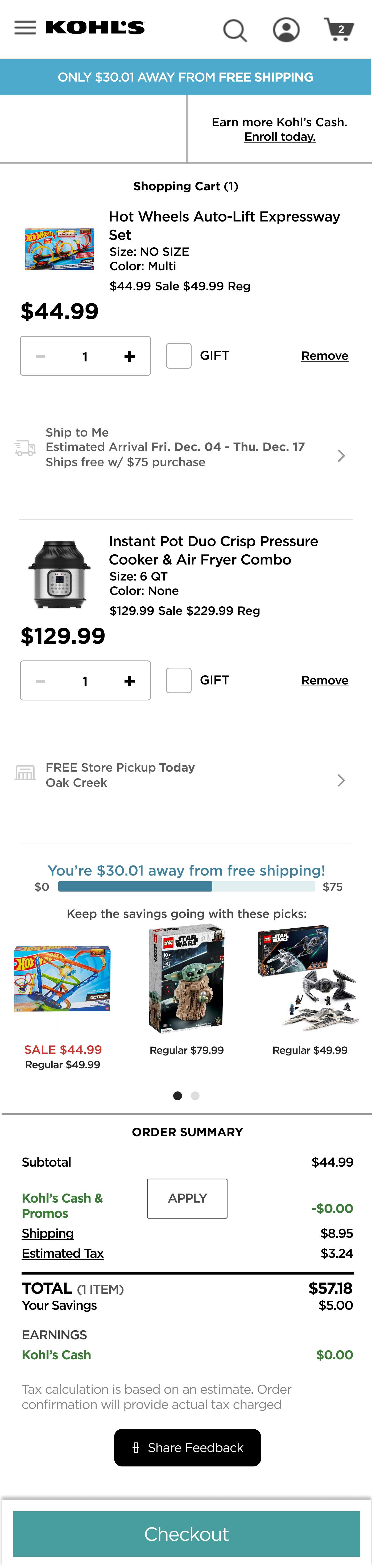 The new Cart and Checkout experience for Kohls.comThe new Cart and Checkout experience at Kohls.comThe new cart and checkout experience at Kohls.com