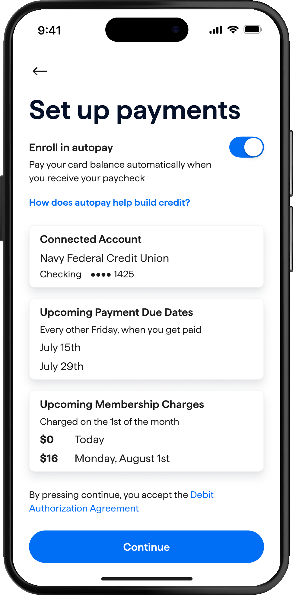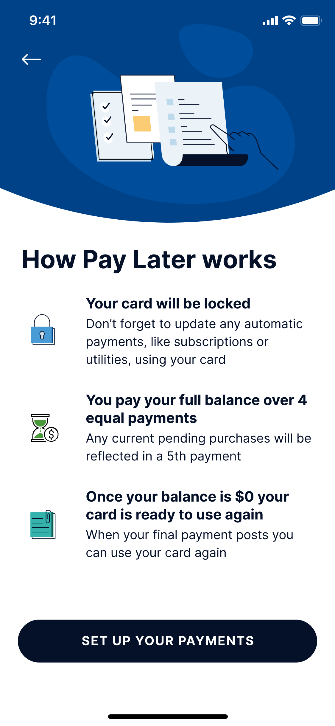 Redefining the application flow became a high priority task. This is where the customer is approved, sets up their payments, agrees to some legal terms and we mail the physical card.